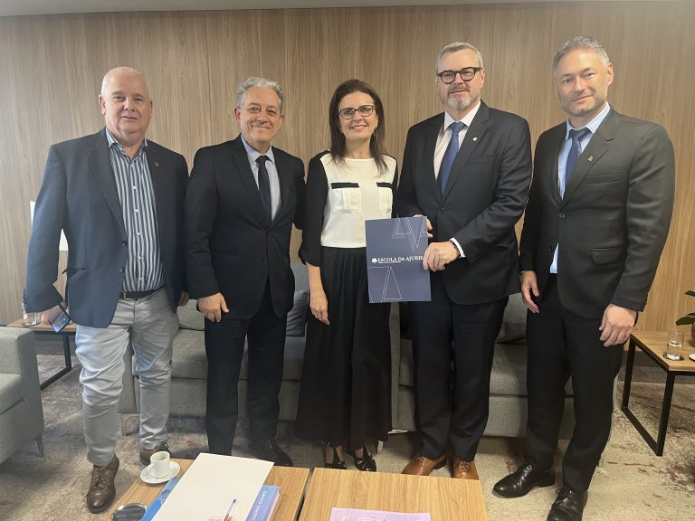 A Escola da Magistratura da AJURIS foi homenageada na manhã desta quinta-feira (27/3) durante reunião da Comissão Executiva do Termo de Cooperação Interinstitucional da Justiça Restaurativa. A iniciativa partiu de um dos integrantes da Comissão, o Núcleo de Cuidado e Bem-Estar da Secretaria Estadual da Educação. A homenagem em forma de placa foi recebida pela vice-presidente Administrativa da AJURIS, Helena Ruppenthal Cunha. O desembargador aposentado Leoberto Brancher, coordenador do Núcleo da Justiça Restaurativa na Escola, também foi agraciado por sua longa trajetória na disseminação da filosofia no país.